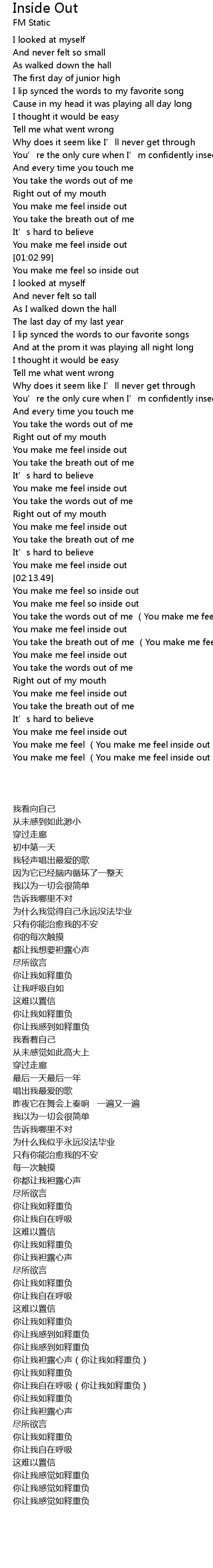 | [03:00.43] | You make me feel You make me feel inside out |