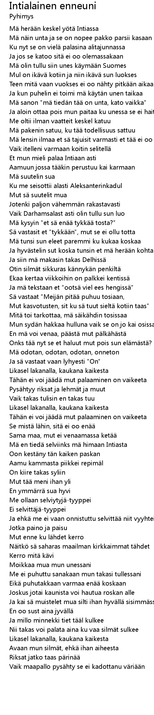 | 歌曲 | Intialainen enneuni |