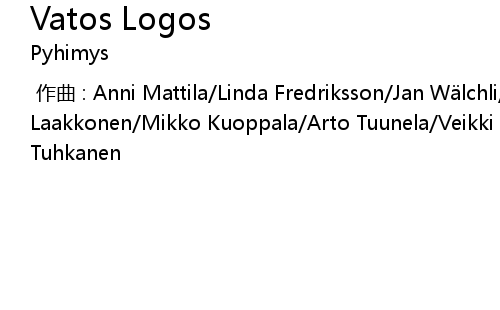 | [00:00.000] | 作曲 : Anni Mattila/Linda Fredriksson/Jan Wälchli/Jooel Laakkonen/Mikko Kuoppala/Arto Tuunela/Veikki Virkajärvi/Eero Tikkanen/Heikki Tuhkanen |