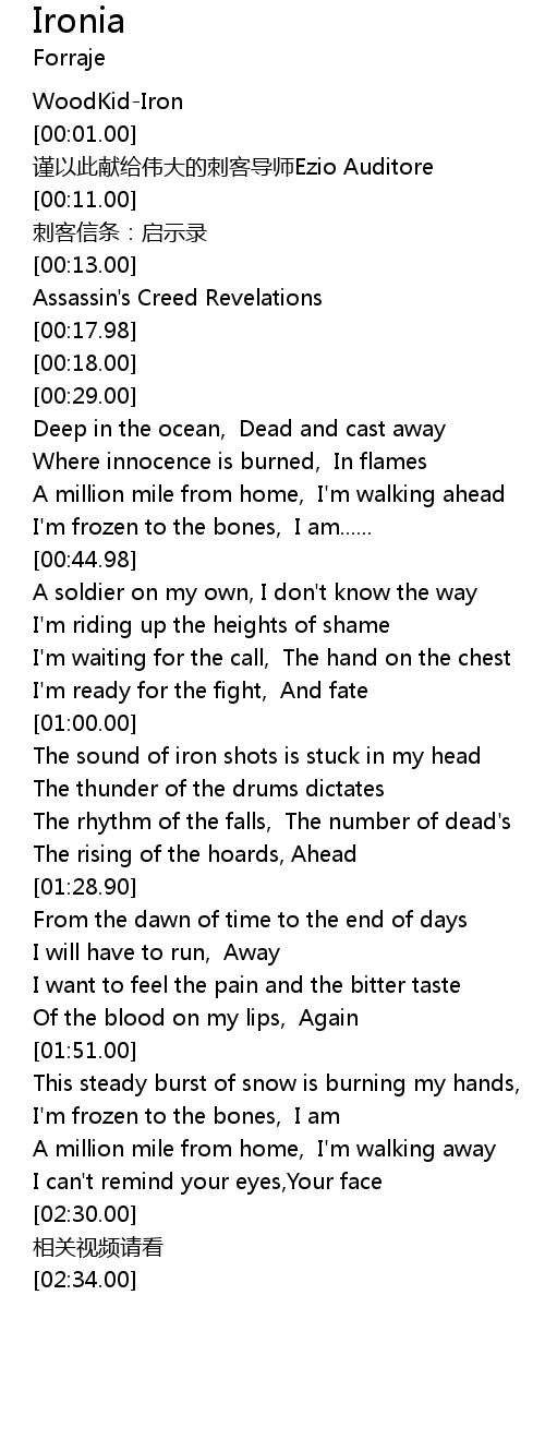 | [00:03.00] | 谨以此献给伟大的刺客导师Ezio Auditore |