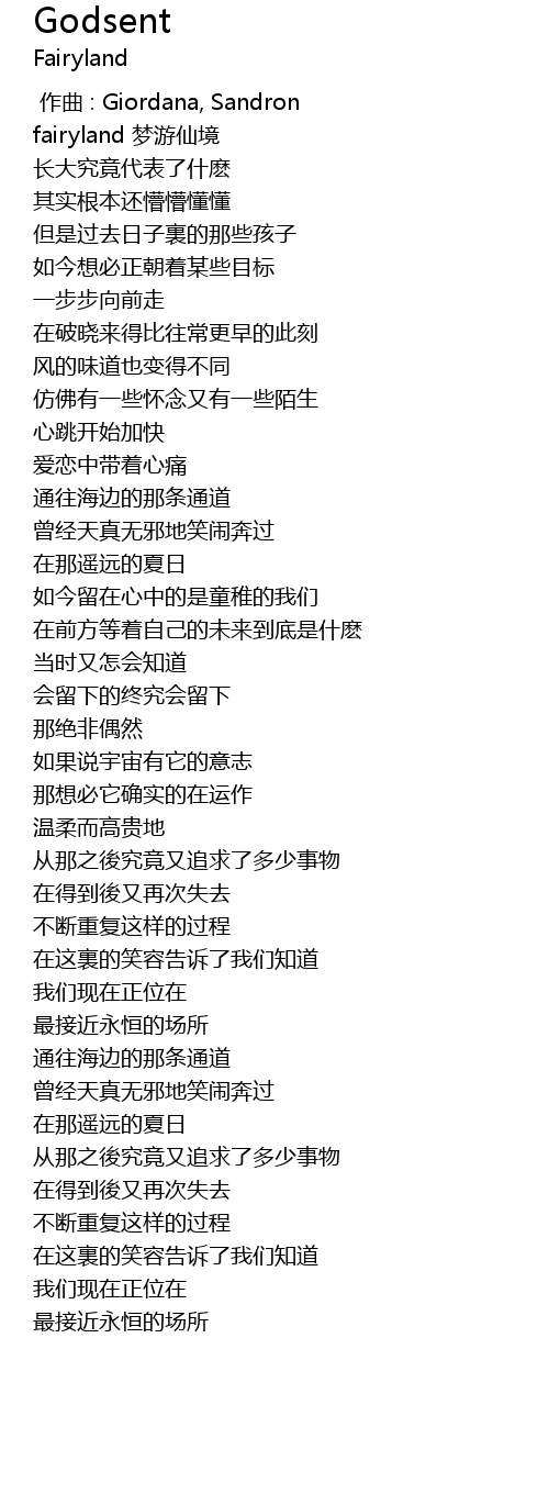 | [00:03.339] | fairyland 梦游仙境 |