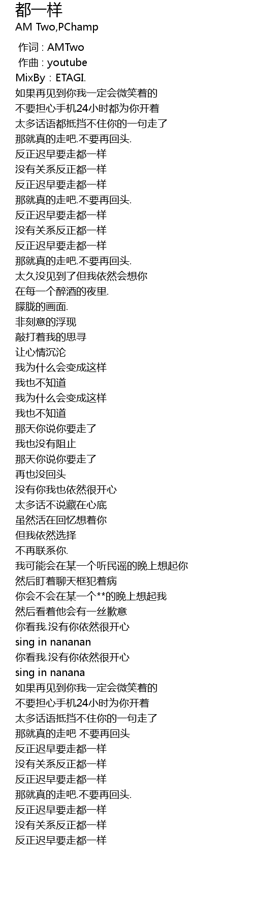 | [02:13.841] | méi yǒu guān xi fǎn zhèng dōu yí yàng |