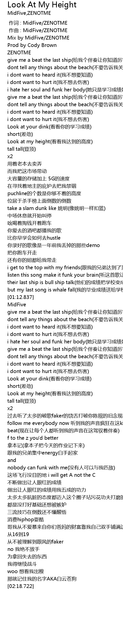 | [01:34.055] | Look at my height kan kan wo da dao de gao du |