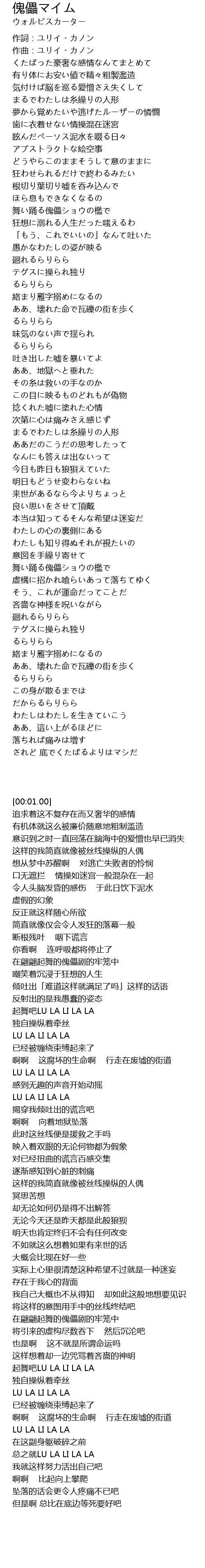 | [00:34.65] | まるでわたしは糸繰りの人形 |
