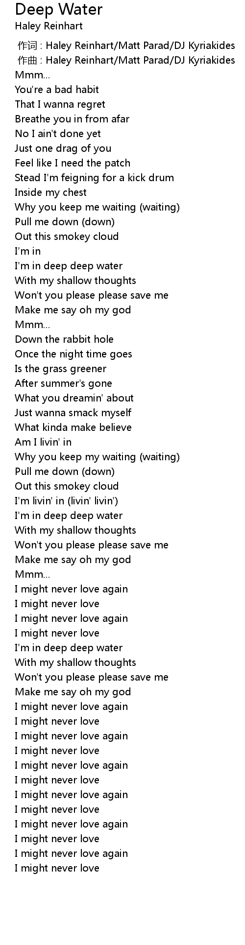 | [00:01.000] | zuo qu : Haley Reinhart Matt Parad DJ Kyriakides |