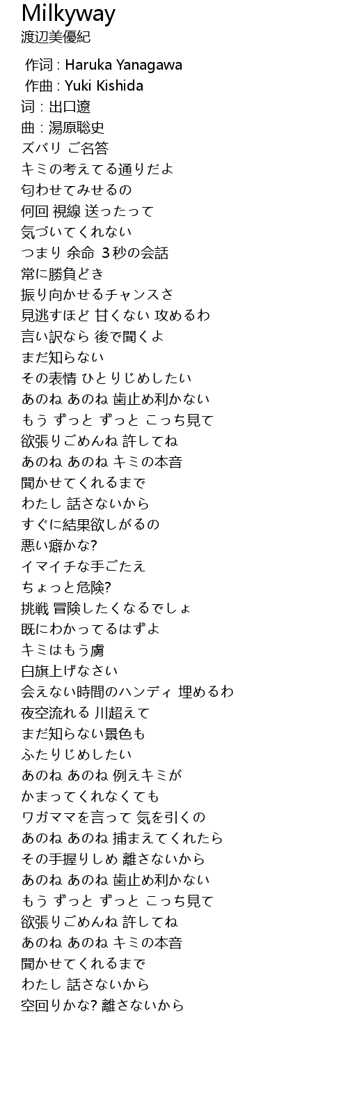 作词 : Haruka Yanagawa |