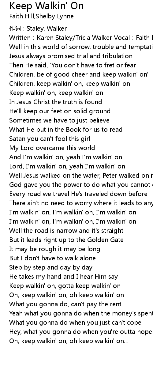 | Oh, keep walkin' on, oh keep walkin' on | |