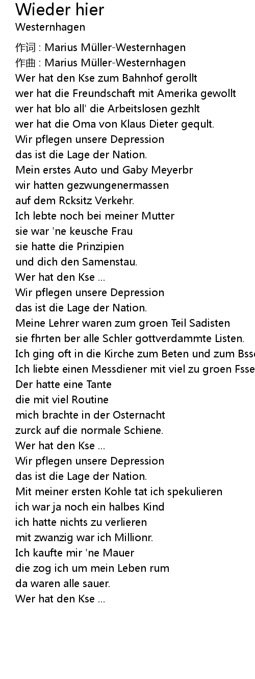 | 作词 : Marius Müller-Westernhagen | |