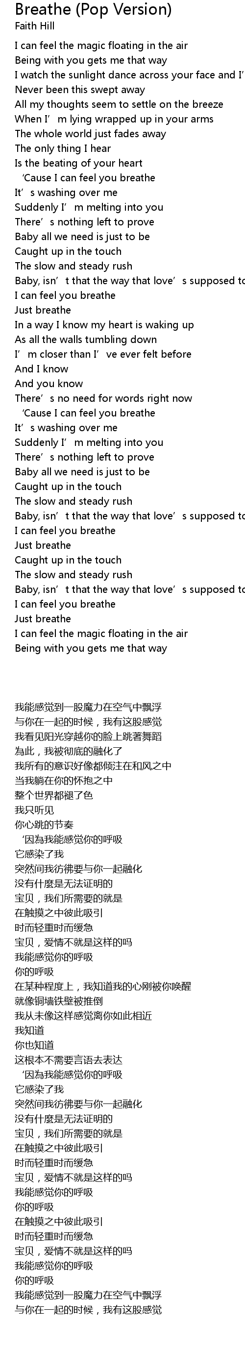 | 歌曲 | Breathe (Pop Version) |