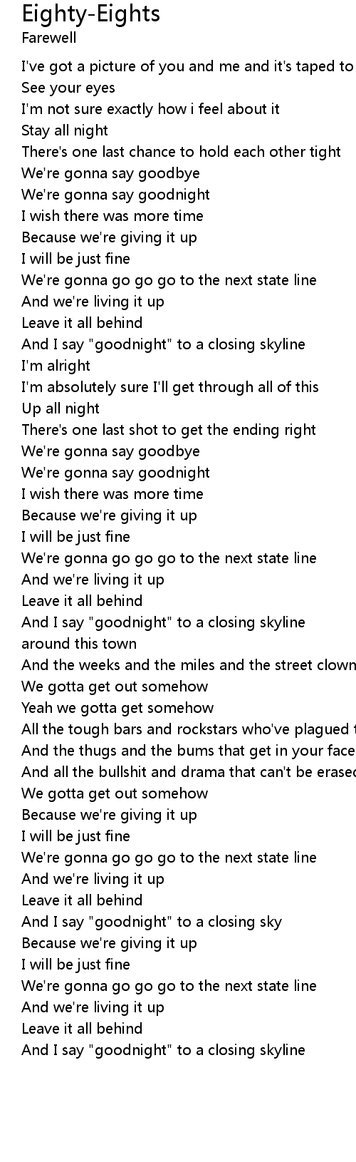 And I say "goodnight" to a closing skyline |