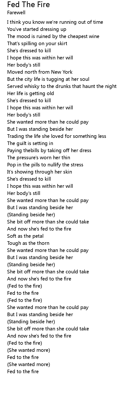 And now she's fed to the fire |