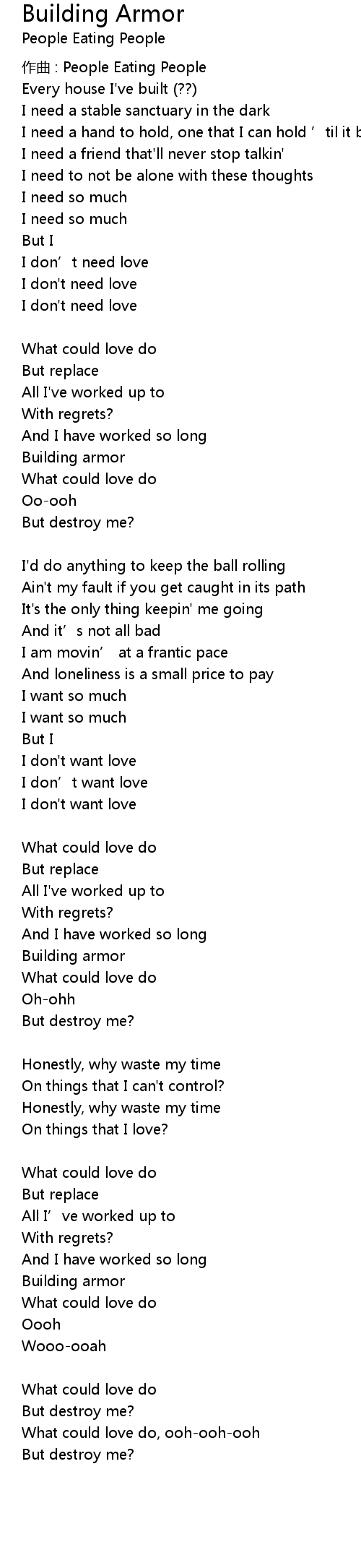 | 歌曲 | Building Armor |