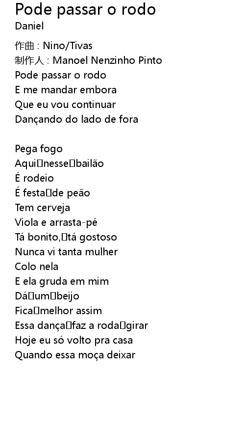| 歌曲 | Pode passar o rodo |