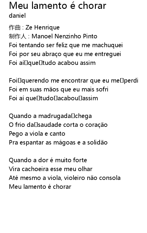 | 歌曲 | Meu lamento é chorar |