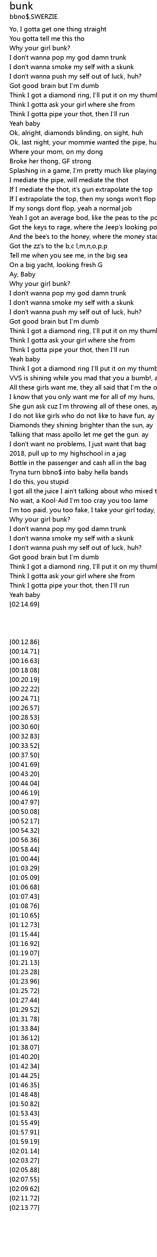 I don't wanna pop my god damn trunk |