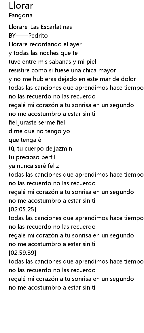 | [00:00.00] | LlorareLas Escarlatinas |