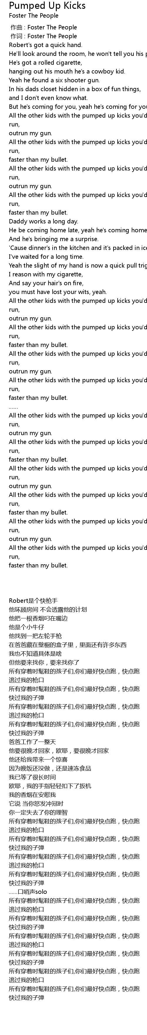| 歌曲 | Pumped Up Kicks |