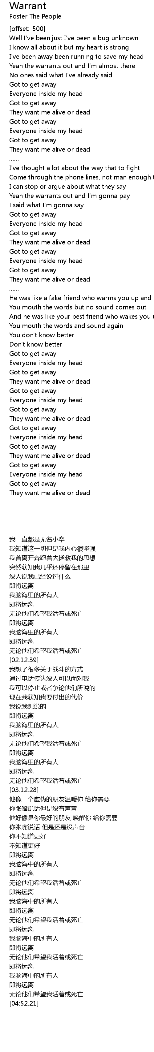 | [01:48.64] | Yeah the warrants out and I'm almost there |