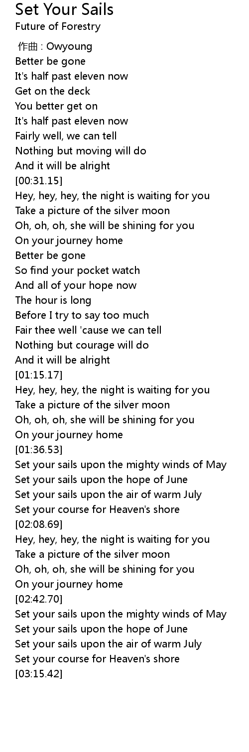 | [02:44.62] | Set your sails upon the mighty winds of May |