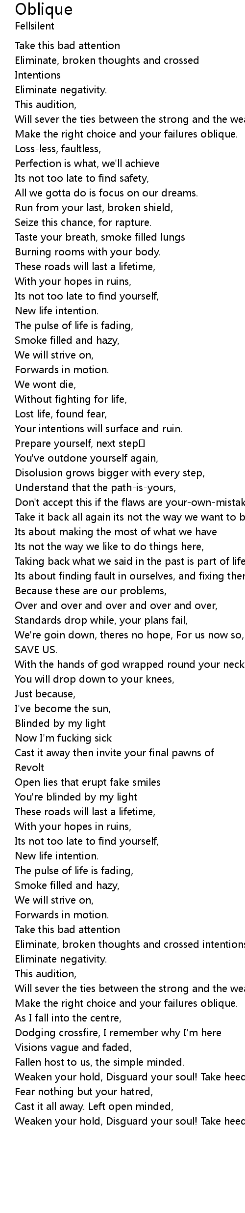 | Weaken your hold, Disguard your soul! Take heed, control. | |