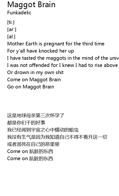 | [00:11.81] | I have tasted the maggots in the mind of the universe |
