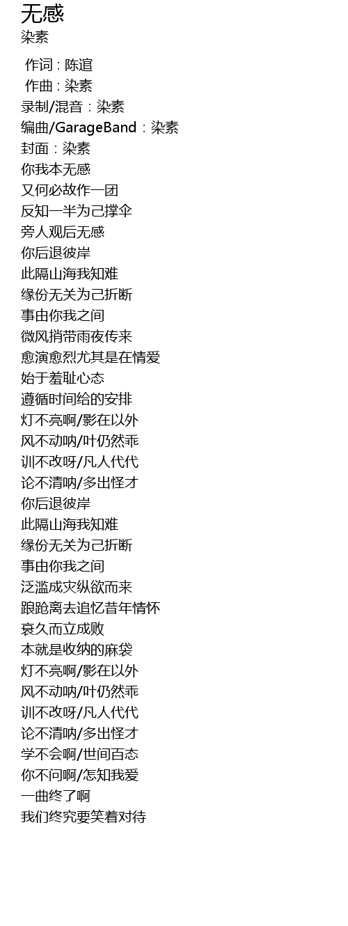 | [00:13.59] | 编曲/GarageBand:染素 |