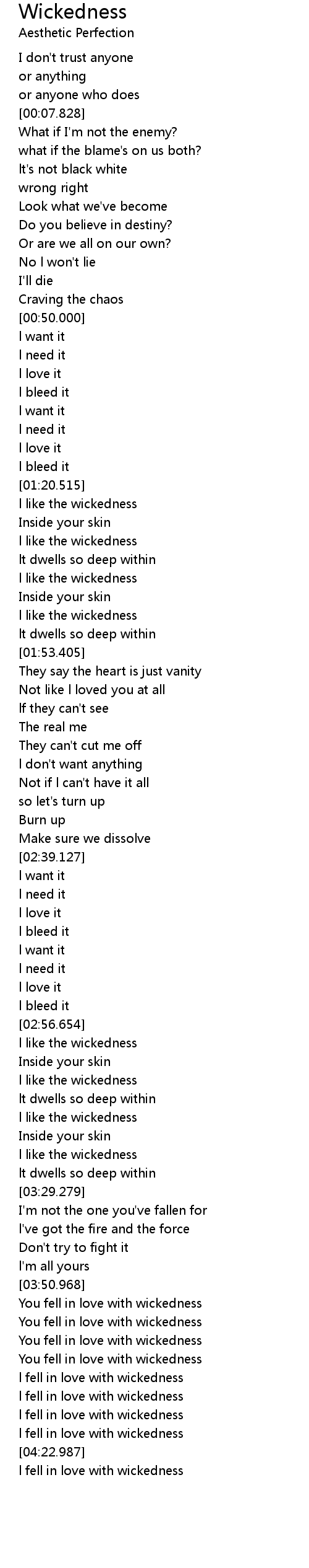 Wickedness 歌词