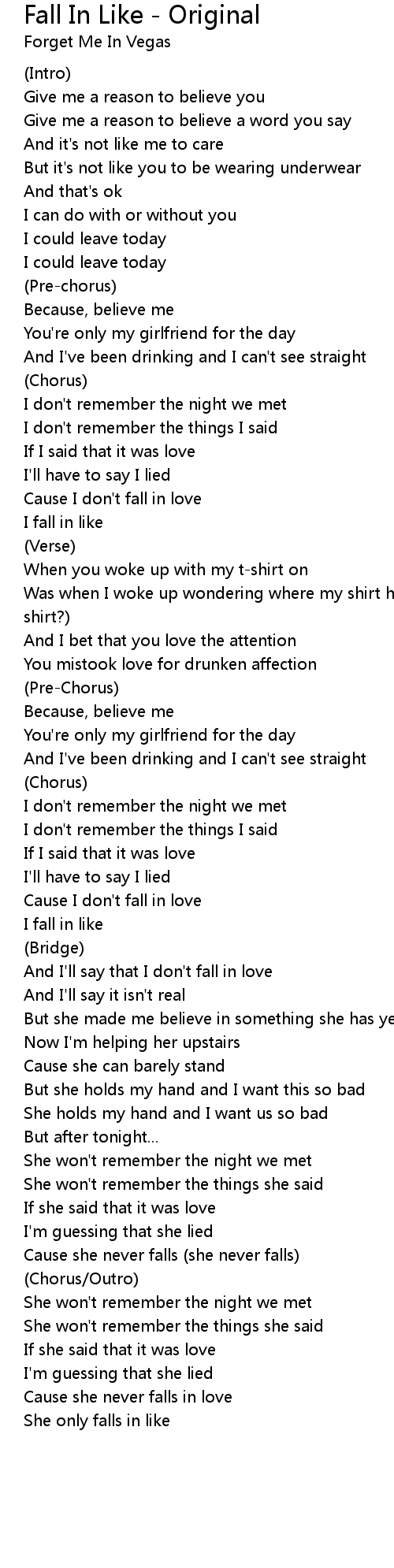 Fall In Like - Original 歌词