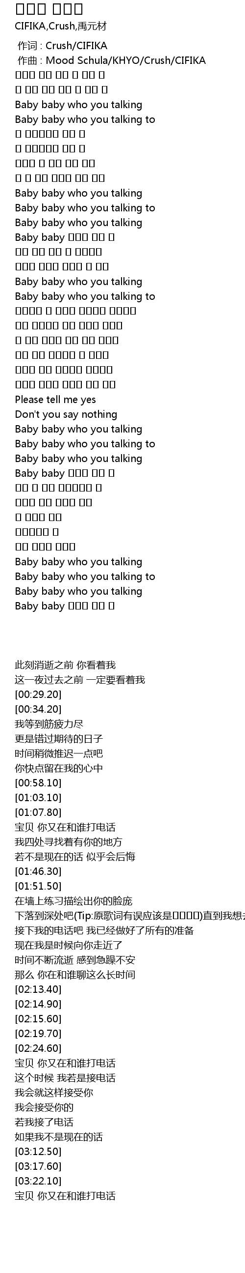 | [00:00.000] | 作词 : Crush/CIFIKA |