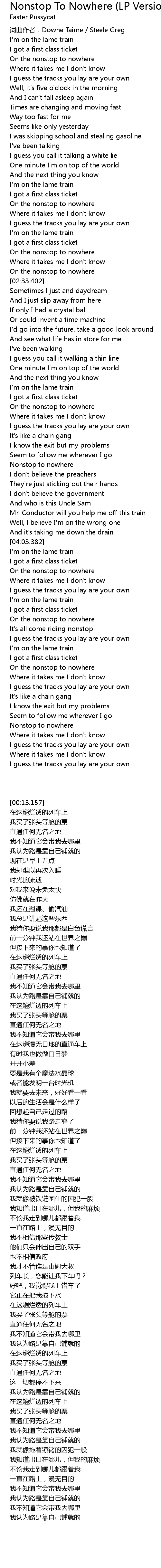 | [02:29.158] | 在这趟漫无目地的直通车上 |