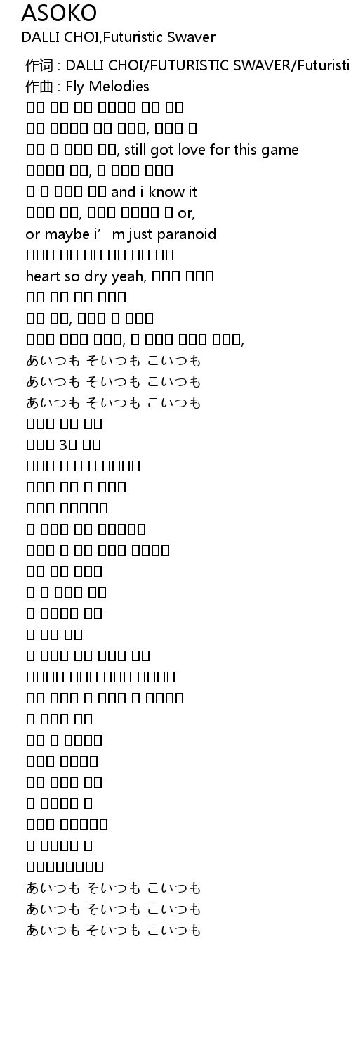 | [00:00.000] | 作词 : DALLI CHOI/FUTURISTIC SWAVER/Futuristic Swaver/DALLI CHOI |