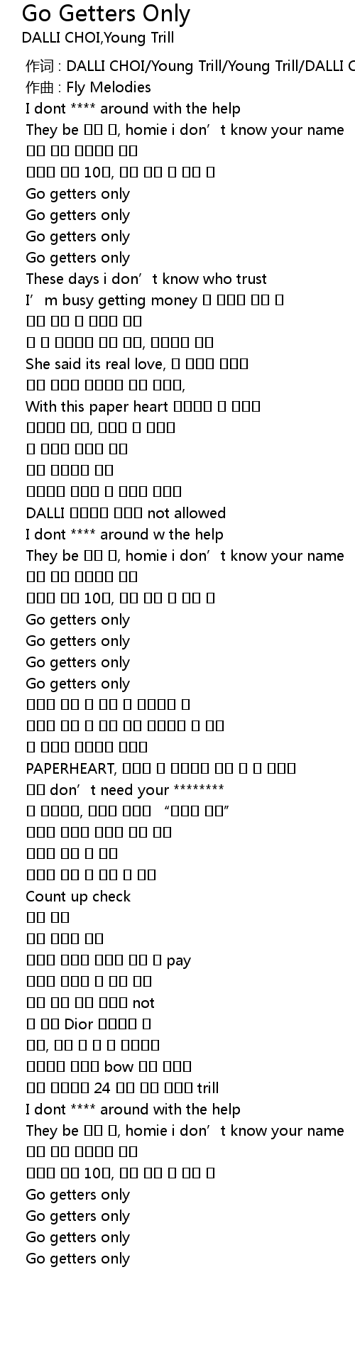 | 歌曲 | Go Getters Only |