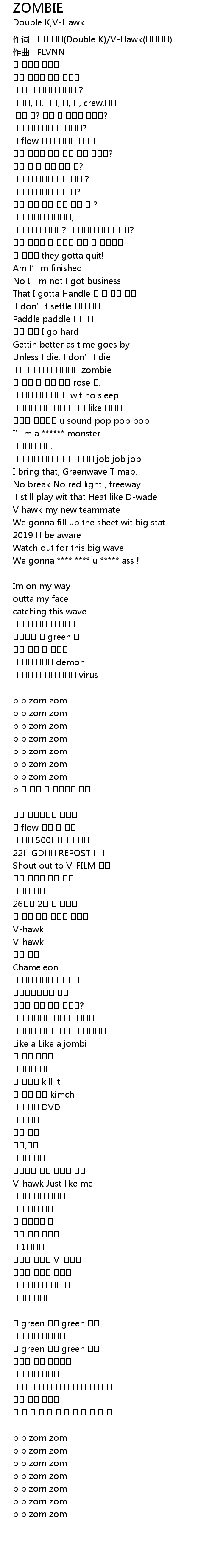 | 作词 : 더블 케이(Double K)/V-Hawk(브이호크) | |