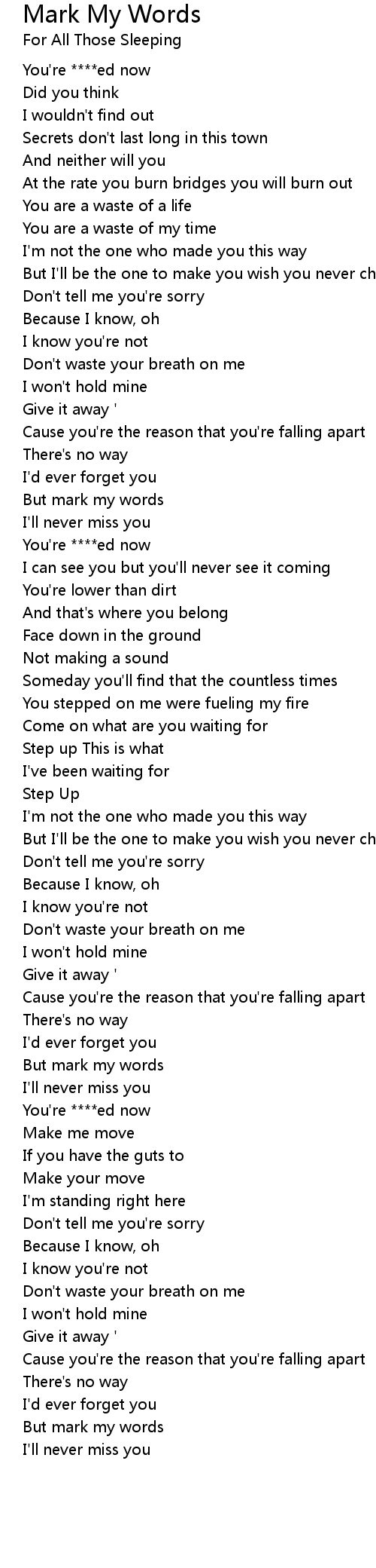 But mark my words |