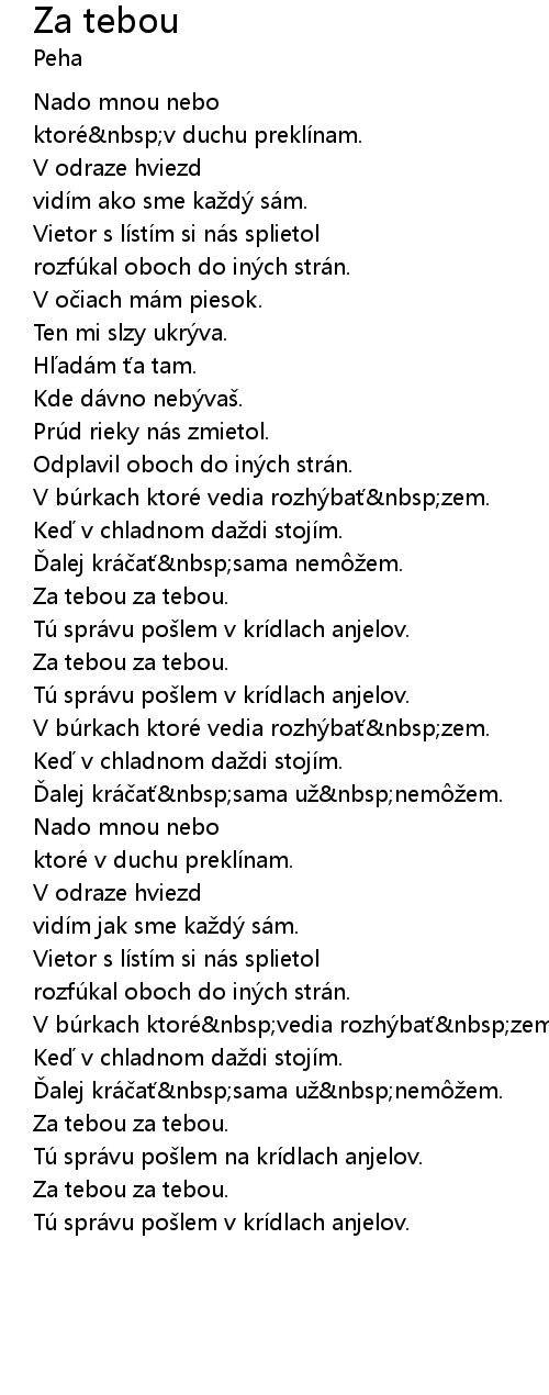 | Tú sprá vu po lem v krí dlach anjelov. | |