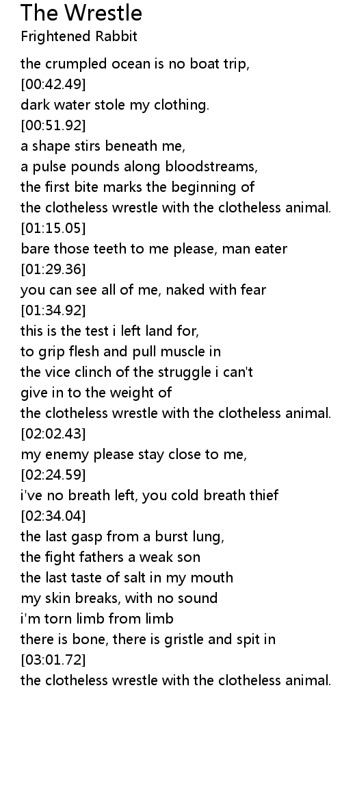 the clotheless wrestle with the clotheless animal. |