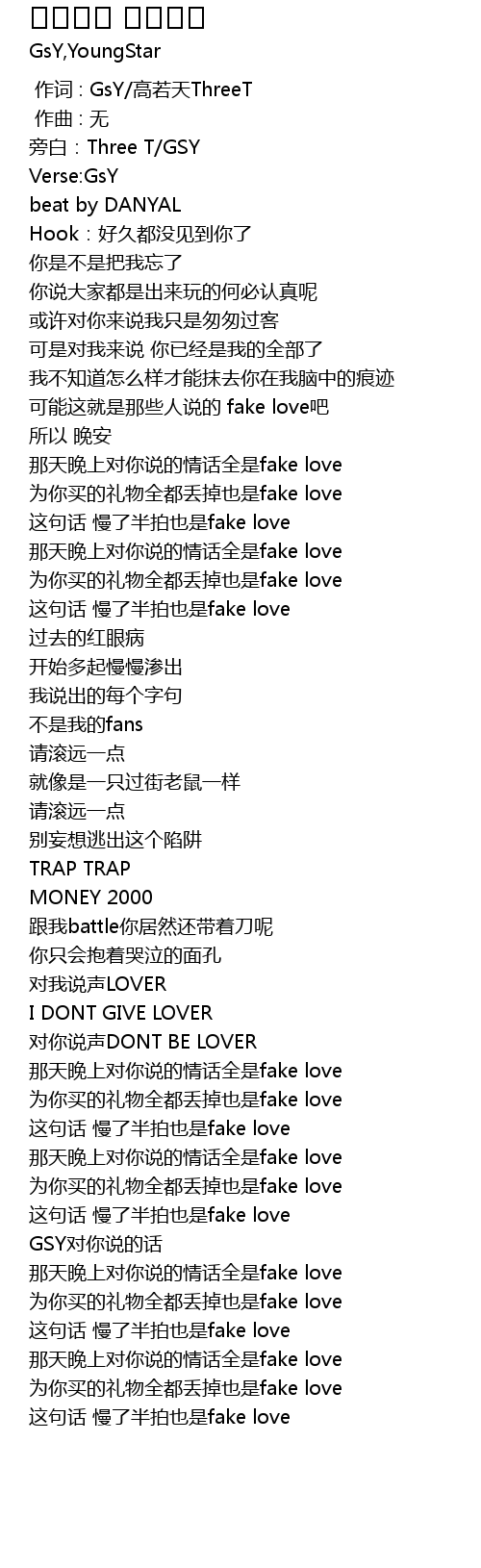 | [00:43.690] | 那天晚上对你说的情话全是fake love |