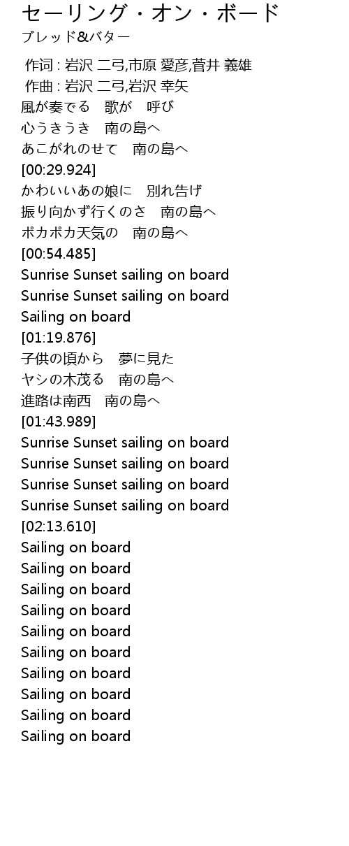 | [00:39.163] | 振り向かず行くのさ 南の島へ |
