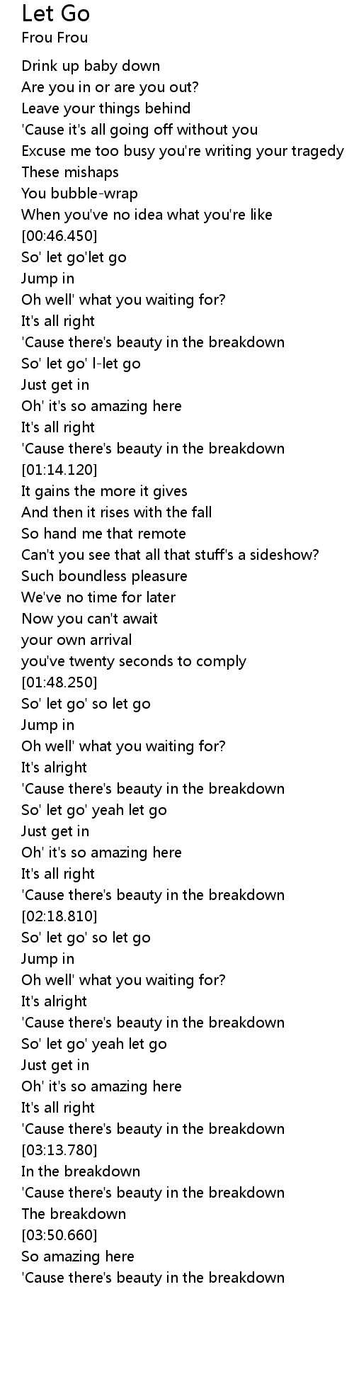 | [01:09.770] | 'Cause there's beauty in the breakdown |