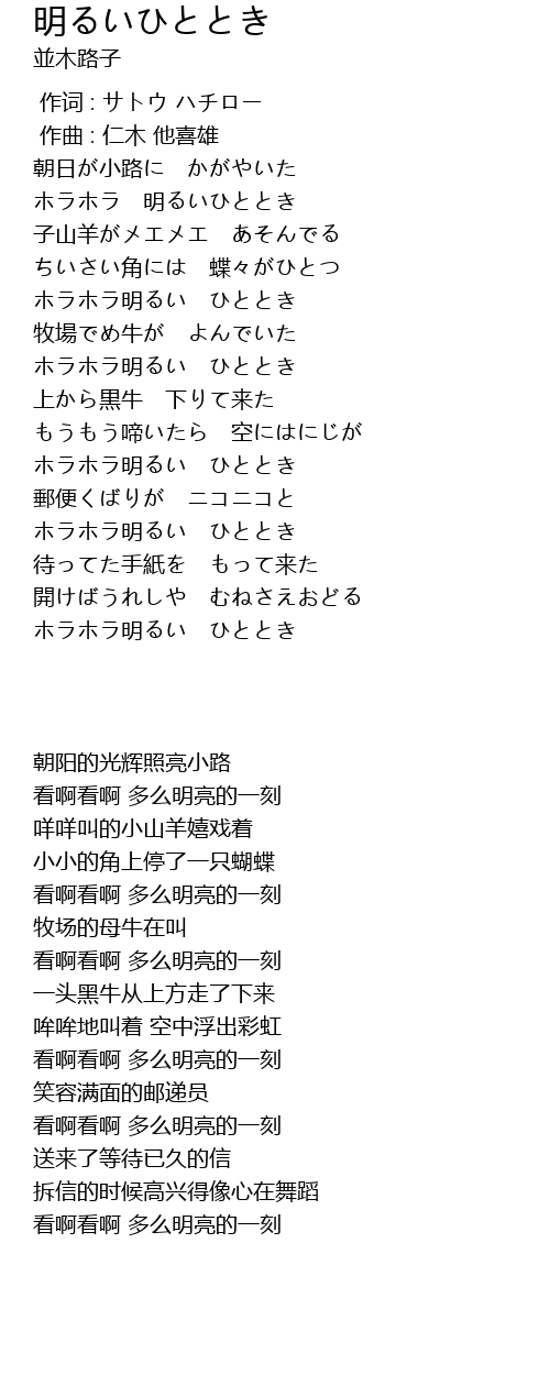 | [01:19.974] | 牧場でめ牛が よんでいた |