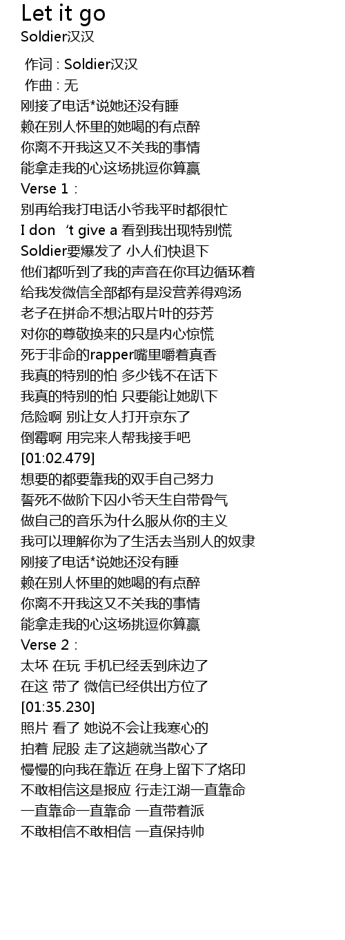 | [00:00.000] | 作词 : Soldier汉汉 |