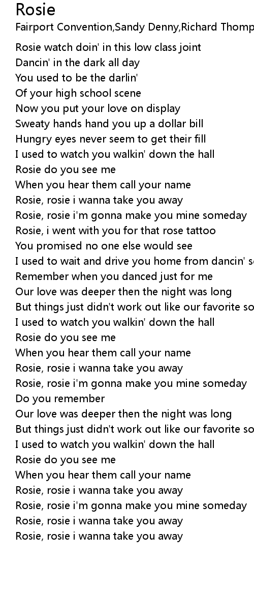 Rosie, rosie i wanna take you away |
