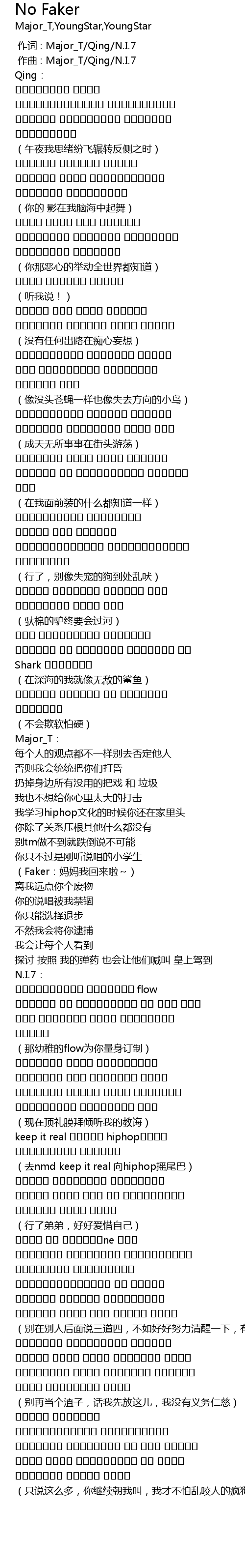 | [00:00.000] | 作词 : Major_T/Qing/N.I.7 |
