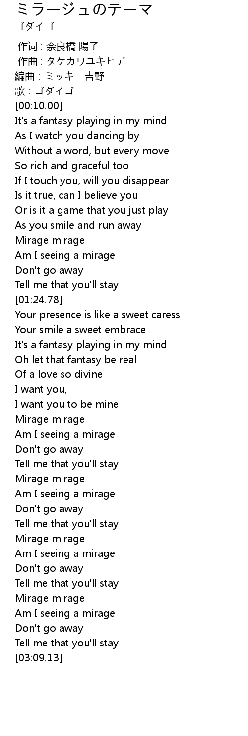 | [00:29.85] | It' s a fantasy playing in my mind |
