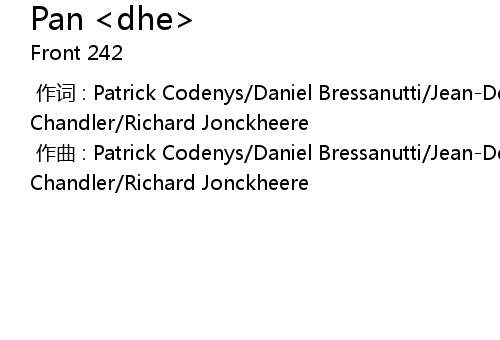 [00:00.000] 作曲 : Patrick Codenys/Daniel Bressanutti/Jean-De Meyer/Amy Chandler/Richard Jonckheere