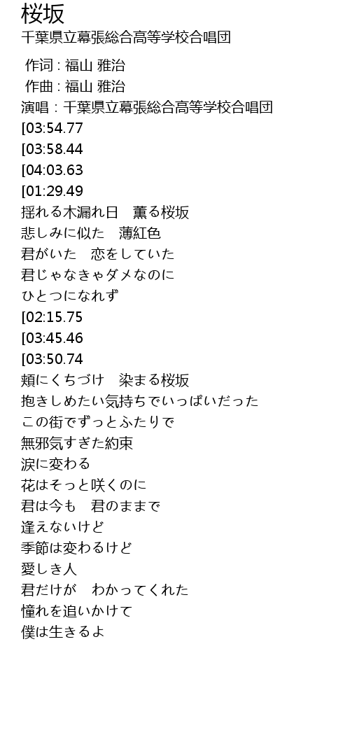 | [00:10.00] | 演唱:千葉県立幕張総合高等学校合唱団 |