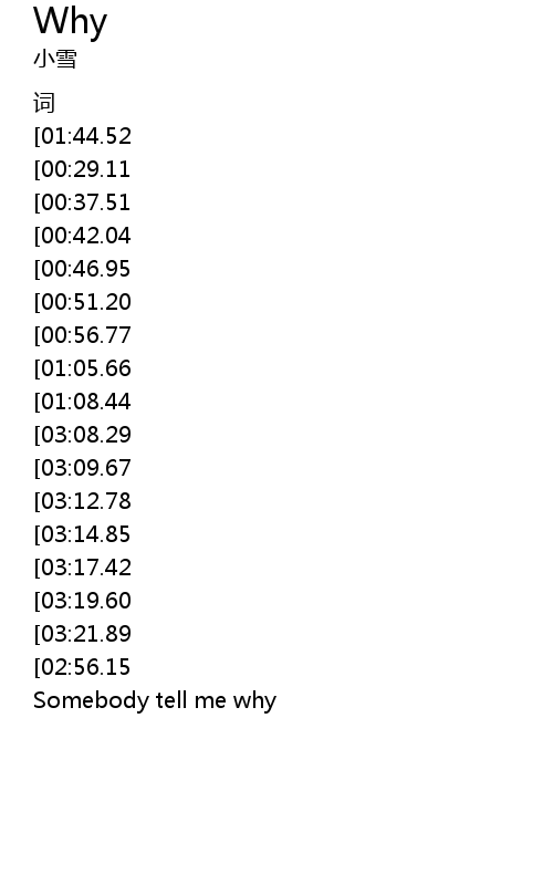 | [03:26.45][03:08.29][02:39.83][01:15.10] | Tell me why |