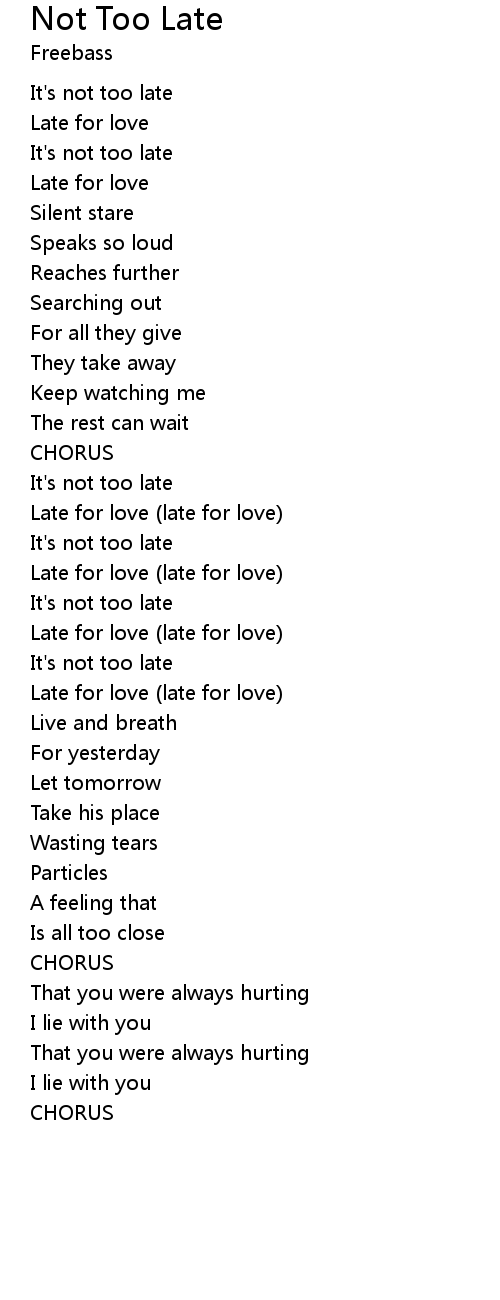 Late for love (late for love) |