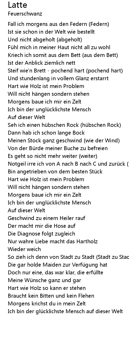 | Fall ich morgens aus den Federn Federn | |