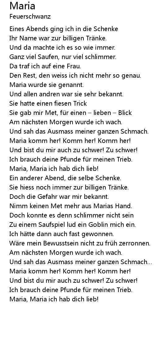 | Nimm keinen Met mehr aus Marias Hand. | |